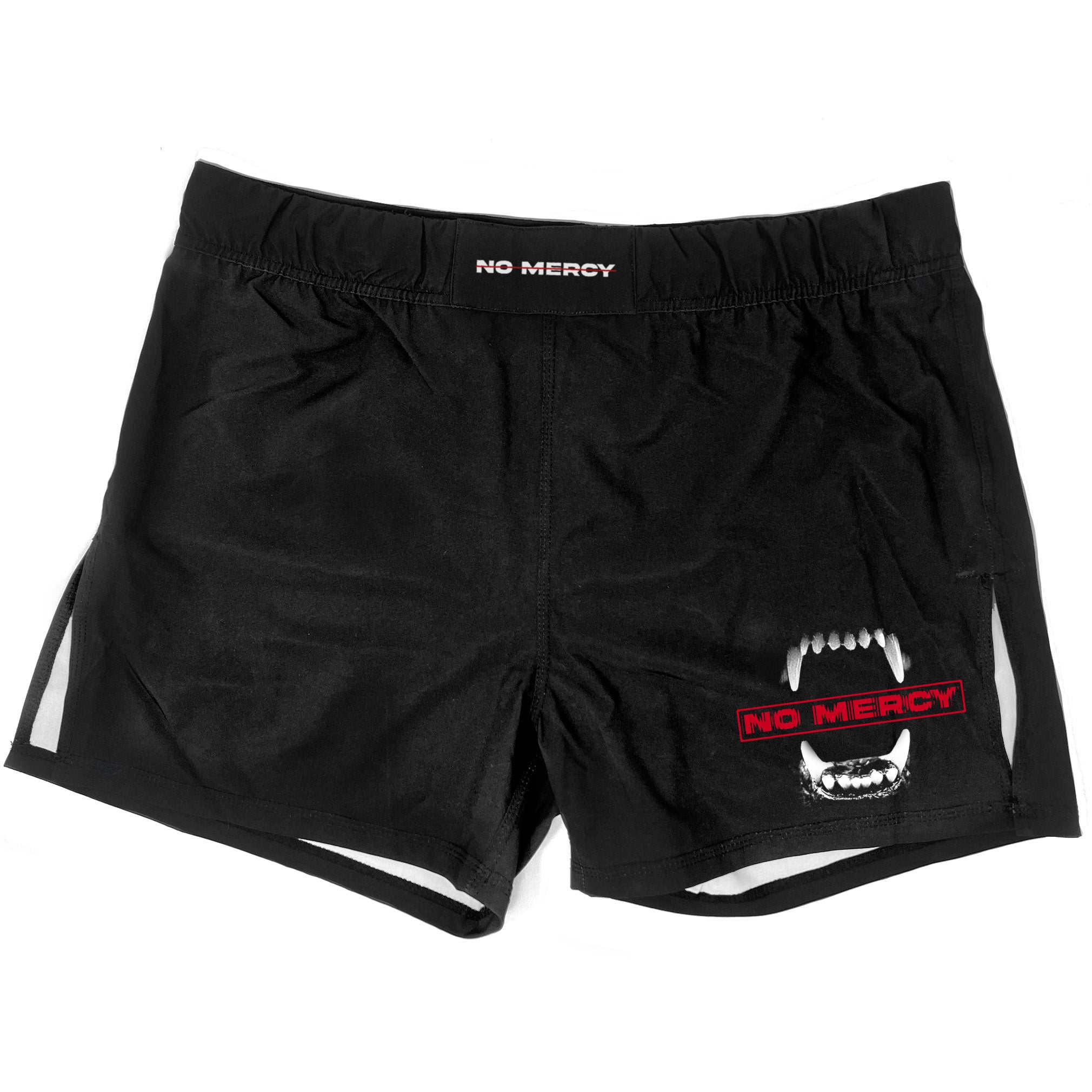 Fight back with relentless intent. The No Mercy Bite Back Shorts are built for competitors who refuse to be tamed. Featuring a bold set of animal teeth sinking into the words “No Mercy” on the left thigh, this design is a reminder to bite down, dig deep, and return every ounce of pressure.