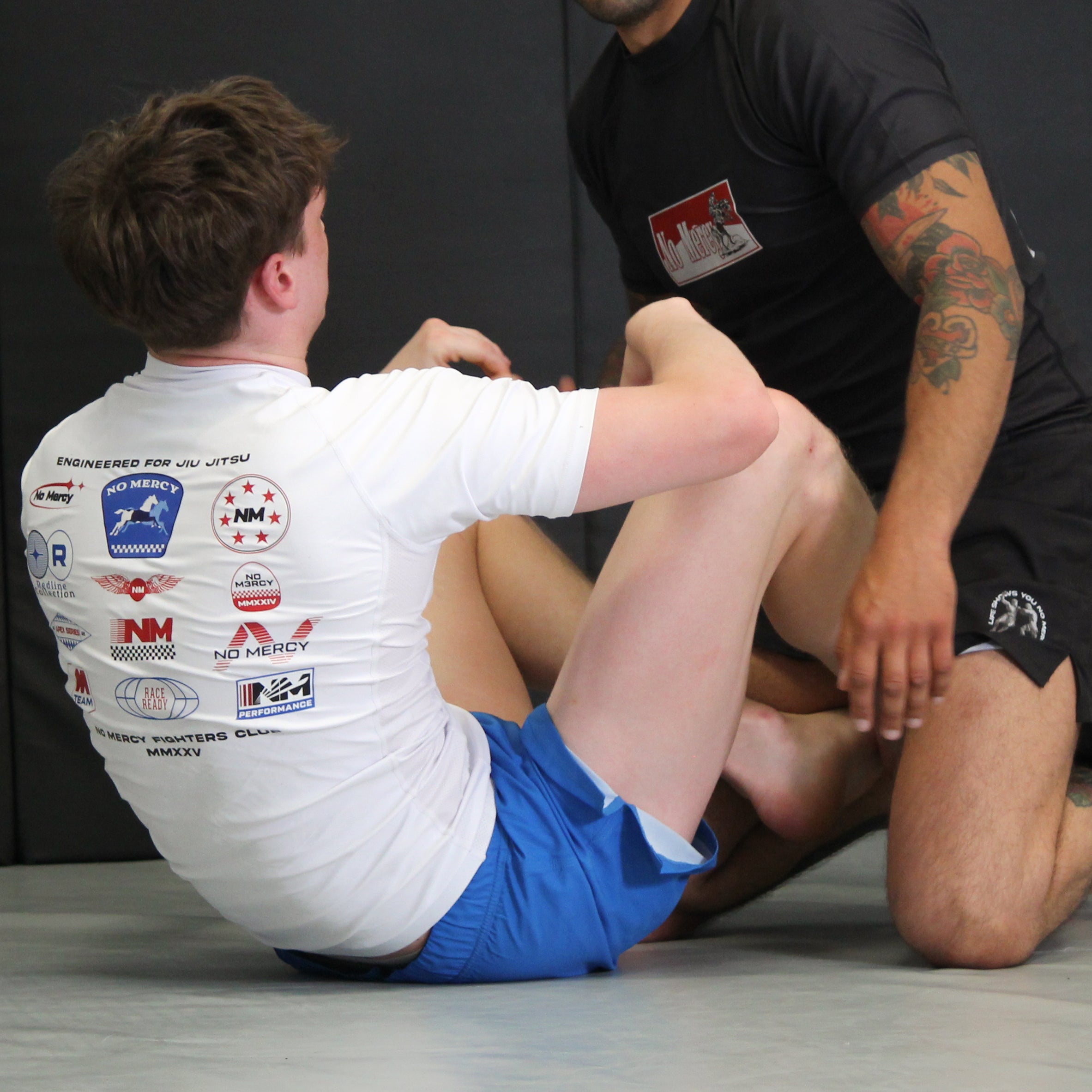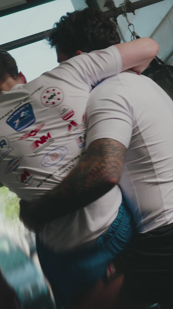 The No Mercy Performance Rash Guard blends the precision of motorsport with the grit of grappling — for athletes who approach the mat with the same intensity as the track. With a crisp white base, this edition keeps it minimal on the front with a small No Mercy logo on the chest pocket area, while the back features a bold lineup of racing-inspired logos and the statement: “Engineered for Jiu-Jitsu.”