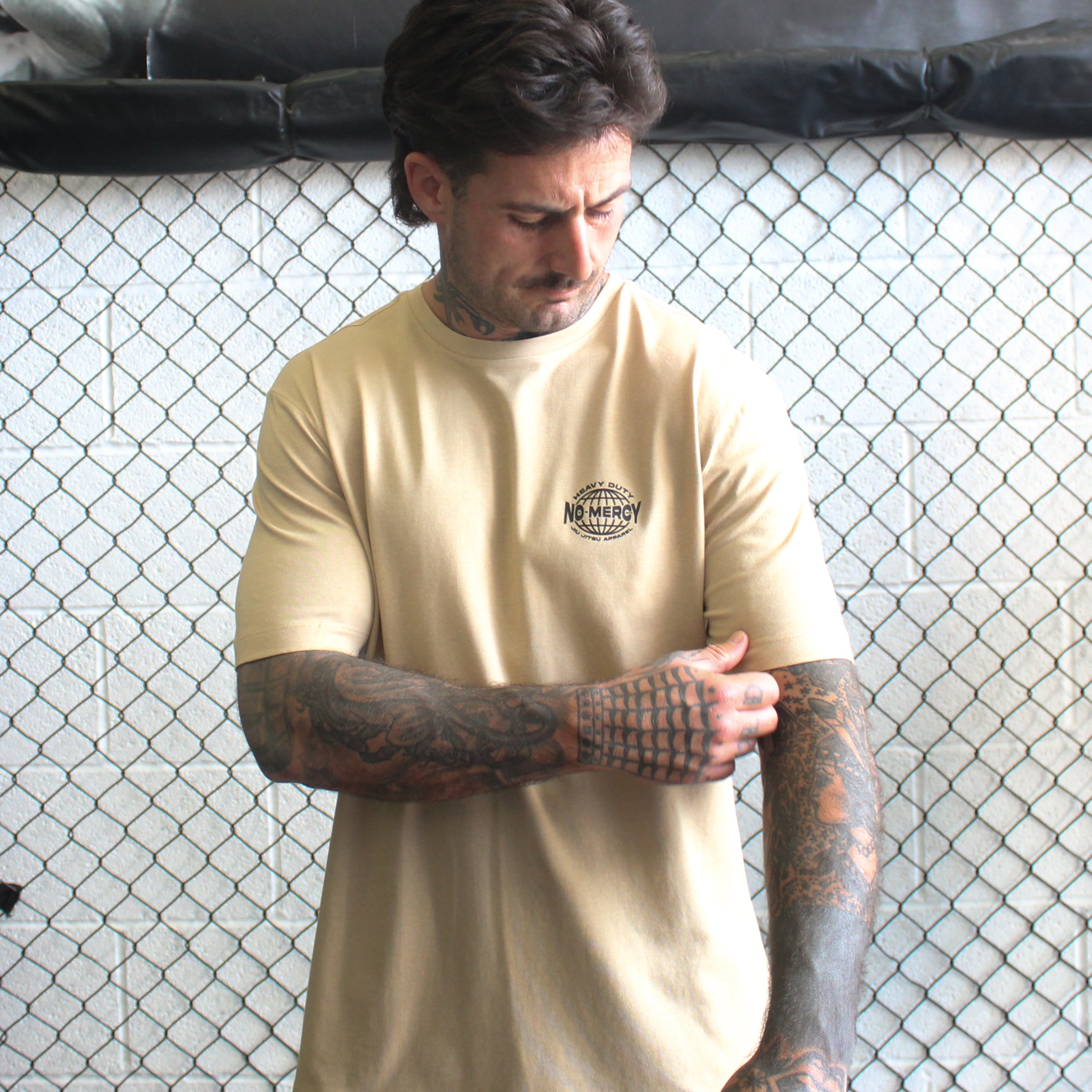 Introducing the No Mercy Heavy Duty Jiu Jitsu T-Shirt in Stone, built for those who push their limits and embrace the grind. Made from premium soft cotton, this t-shirt offers a comfortable fit that’s perfect for both training and everyday wear. The bold graphic on the front and back proudly displays “Heavy Duty Jiu Jitsu Apparel” and “No Mercy,” representing strength, durability, and the relentless mindset of those who train with passion. With its high-quality fabric and eye-catching design, this tee is a statement piece for warriors who live and breathe No Mercy.