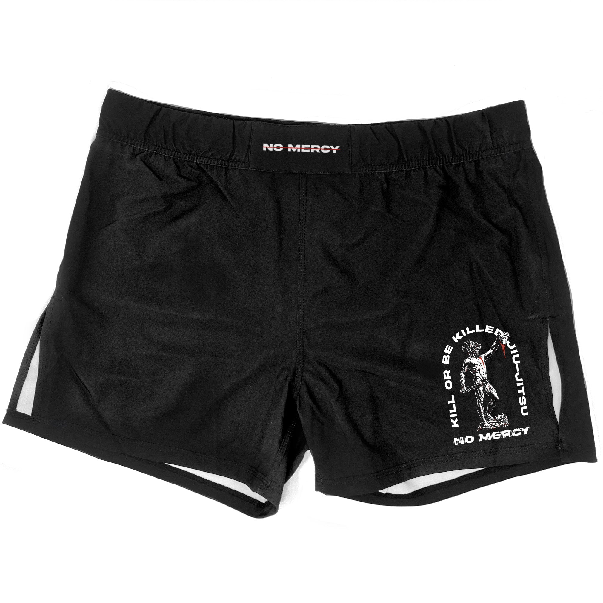 Enter every roll with the mindset of a conqueror. The No Mercy Black Competition Shorts – Perseus Edition are built for fighters who refuse to fold under pressure. Featuring the iconic Perseus holding the head of Medusa on the left leg, this design captures the essence of triumph over chaos — a reminder that victory belongs to those who dare.