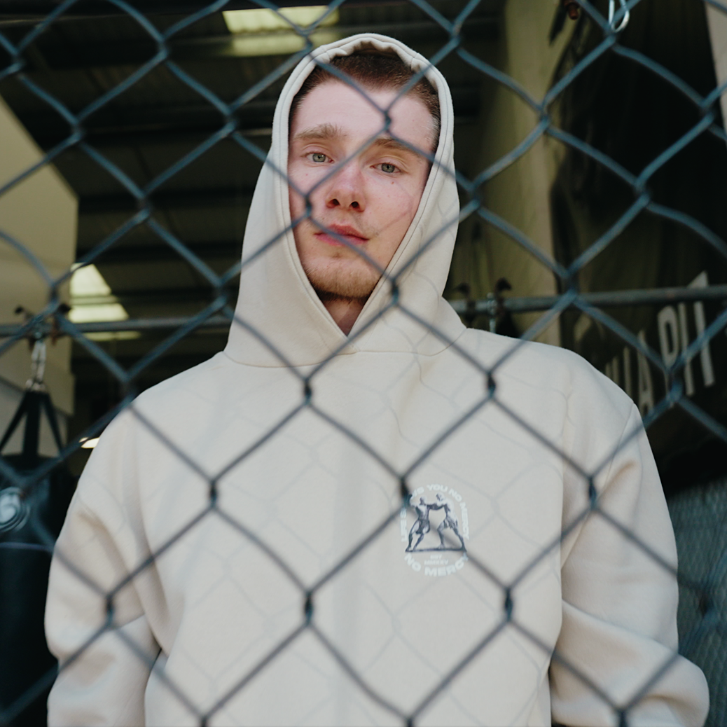 Introducing the Return the favour Hoodie in Stone, crafted from heavyweight premium cotton for a structured yet ultra-soft feel. This hoodie features a ribbed hem and cuffs for ultimate comfort. The back showcases a bold Life Shows You No Mercy graphic.