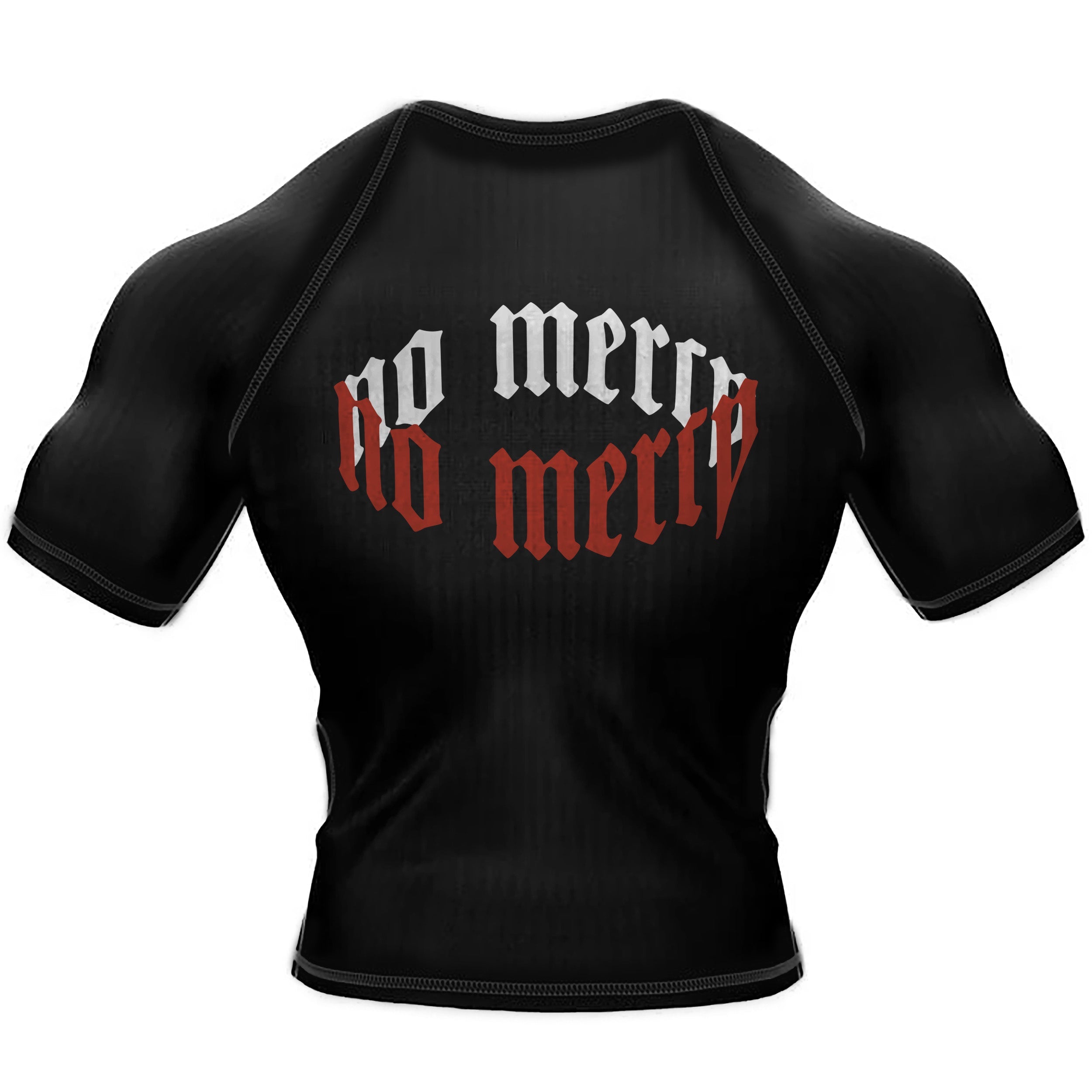 The No Mercy Ring Rashguard is a minimalist statement of intent — stripped back, but charged with meaning. Featuring a gothic, medieval-style circular design, it mirrors the form of the ring itself — the arena where strength, fear, and discipline collide.